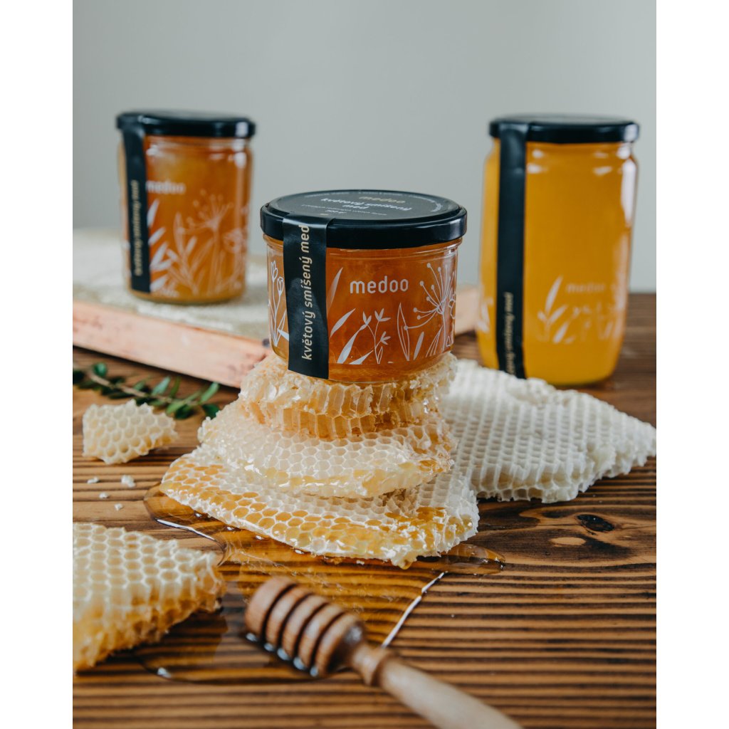 Smíšený květový med od našich včel z okolí šilheřovického parku vám umožní stále objevovat nové chutě. Nikdy totiž nevíme, na kterých květech přesně se včelky pásly a kterého nektaru přidaly do medu víc. S jistotou ale víme, že smíšený květový med obsahuje absolutně největší množství pylových zrn, a doporučuje se tak na podporu imunity i u těch nejmenších.