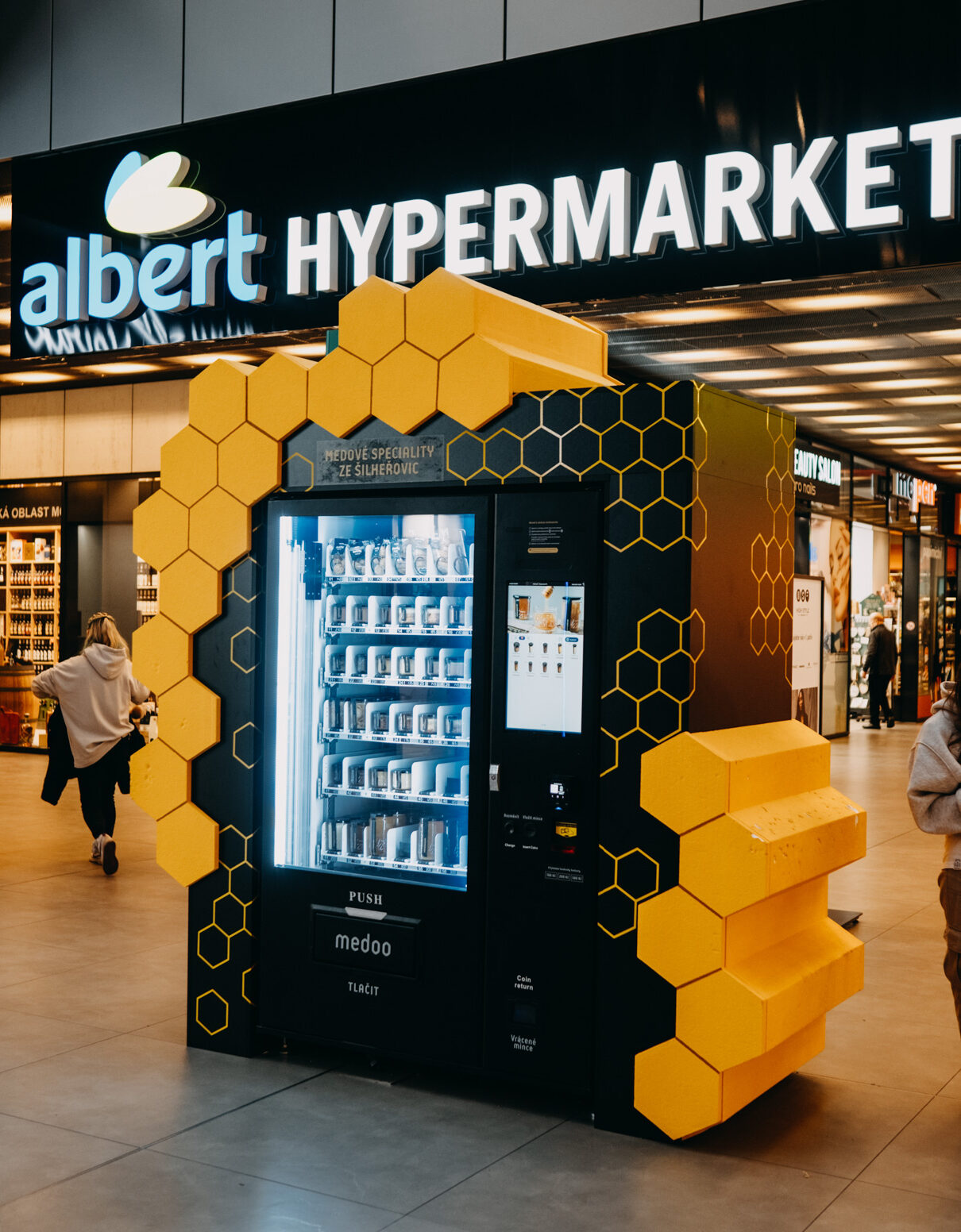 Dlouho jsme hledali způsob, jak vám zkrátit cestu k našemu medu. Jak byste si mohli med vychutnat hned. Bez čekání na objednávku z e-shopu, bez cestování do naší medárny. Řešení jsme našli až na jedné dovolené v Bavorsku. V téměř každé vesnici tam měl místní farmář u cesty postavený svůj prodejní automat. S mlékem, s vejci, s masem, s uzeninami… A my si řekli, že to stejné zkusíme i u nás.